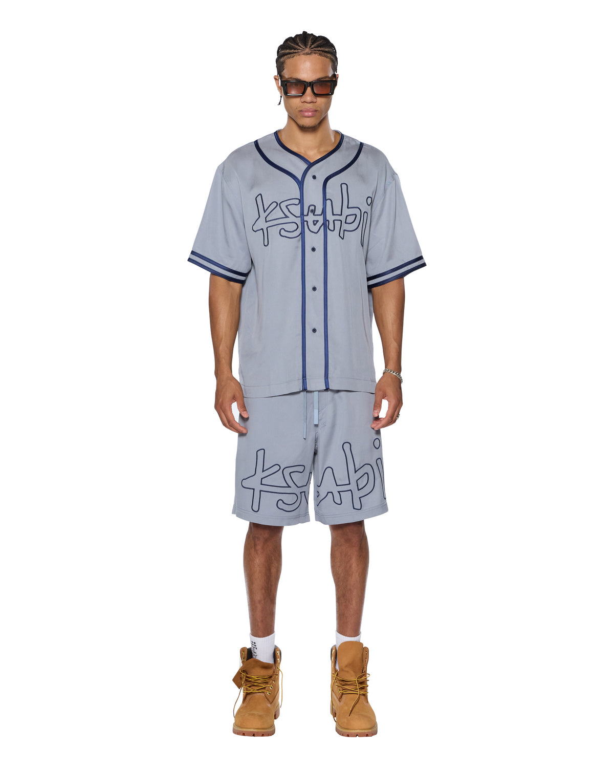 The 1999 Life Jersey Storm is an oversized fitting short sleeve resort shirt with a regular length finish, cut from tencel in blue colourway. Featuring contrast ribbing around the neckband and sleeve hems, this style showcases seasonal Ksubi art on the front left chest and back, finished with T-box embroidery.
