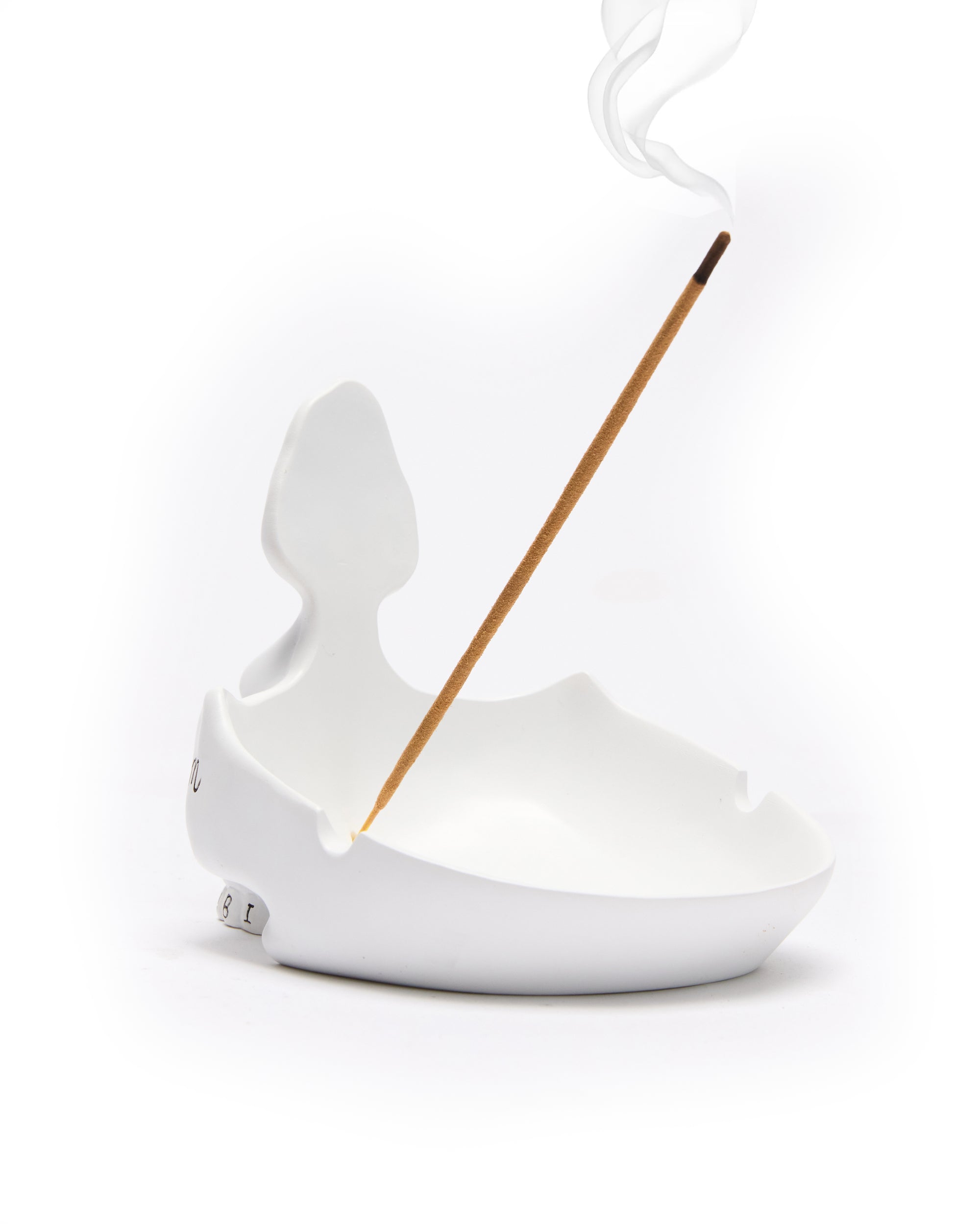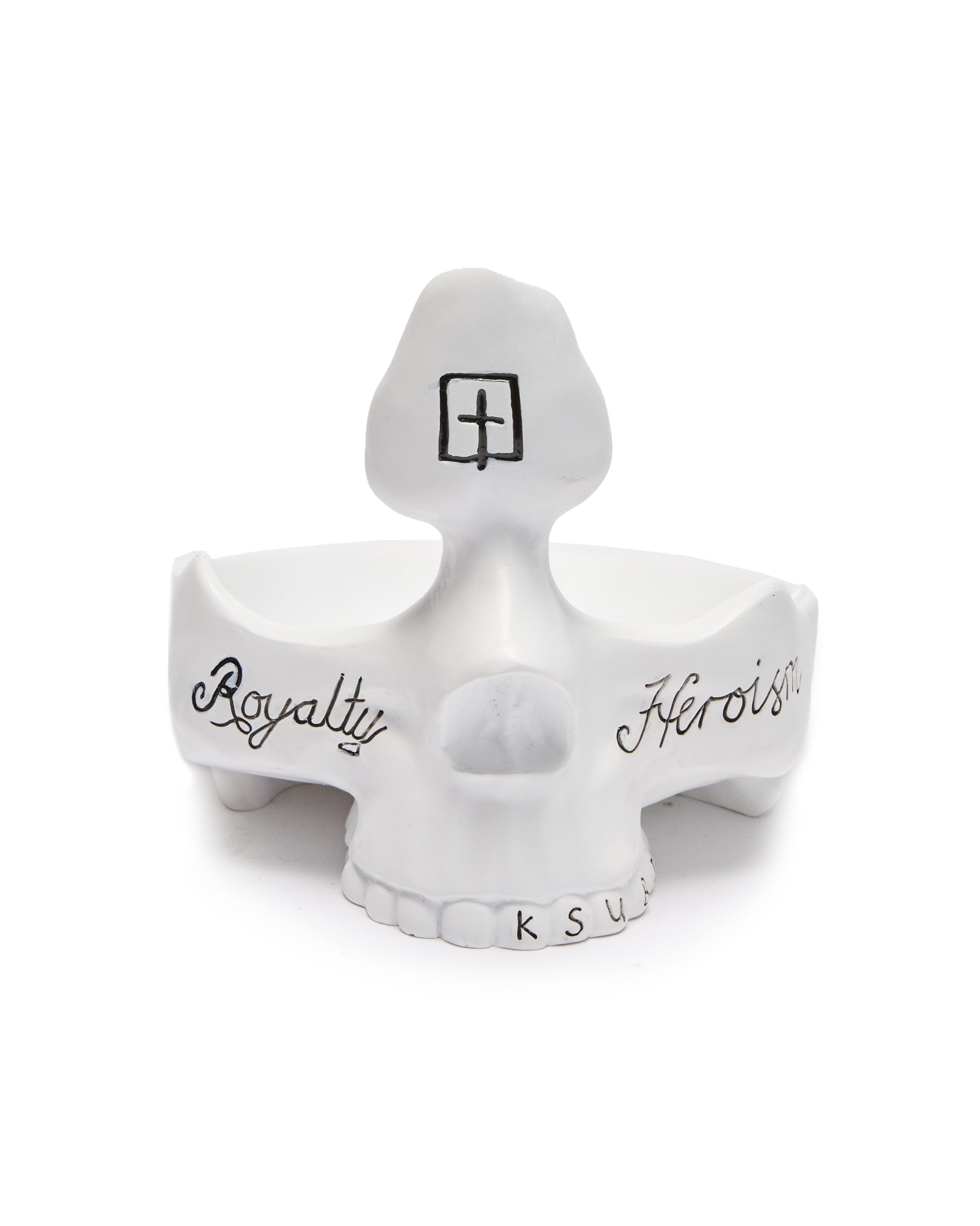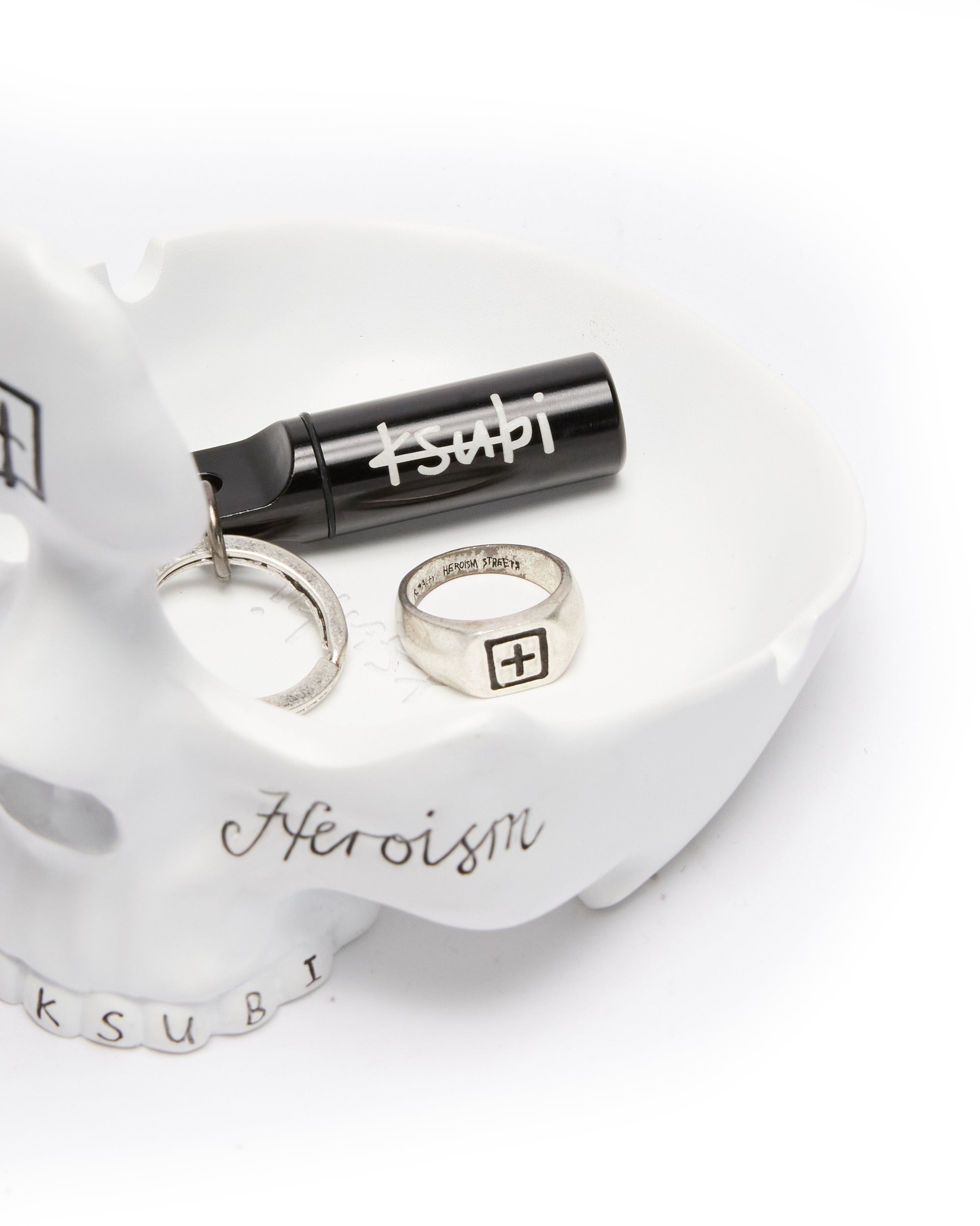 The Brains Ashtray White is a custom-crafted ceramic piece featuring Ksubi's signature logos, including the Cross Box and 1999. Designed for versatility, it functions as an ashtray, tray, eyewear holder, and even includes an incense holder.