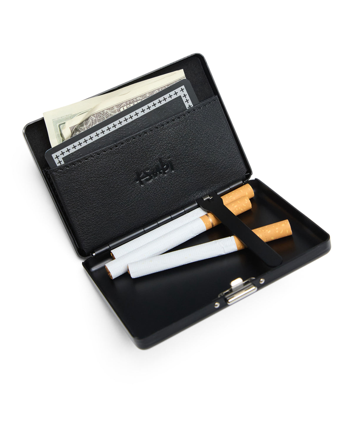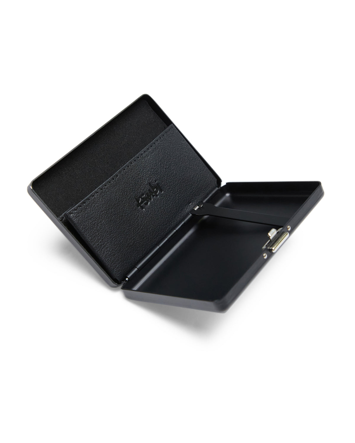 The Ksmoke Wallet Black is a wallet case featuring branded internal premium leather 2 card slot compartment on one side and cigarette holder compartment on the other. Finished with white front and back signature Ksubi logo artworks.