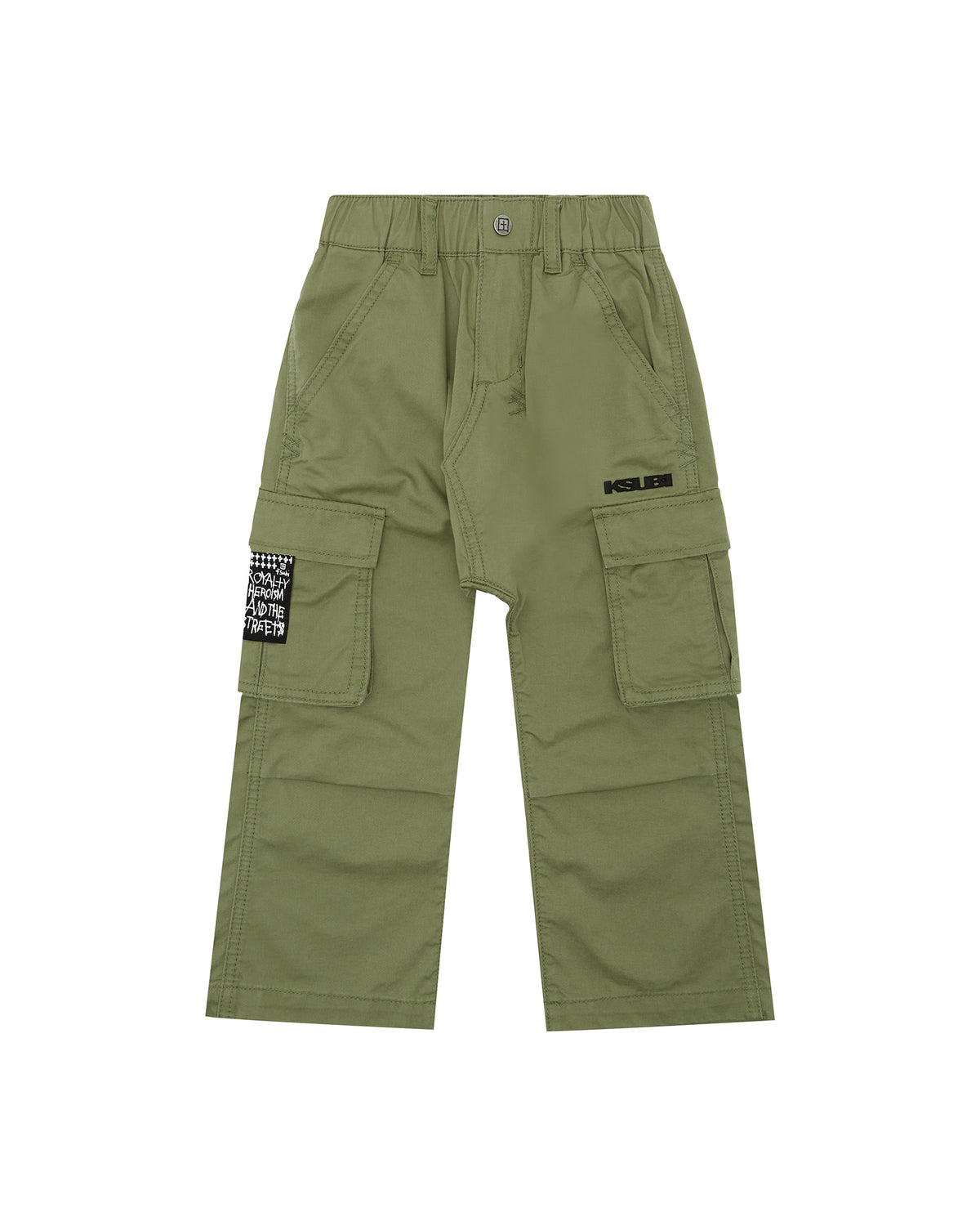 The Lil Krush Cargo Pant Stone is a adjustable fit cargo pant made from 100% cotton. Featuring an elastic waistband and classic side pockets.