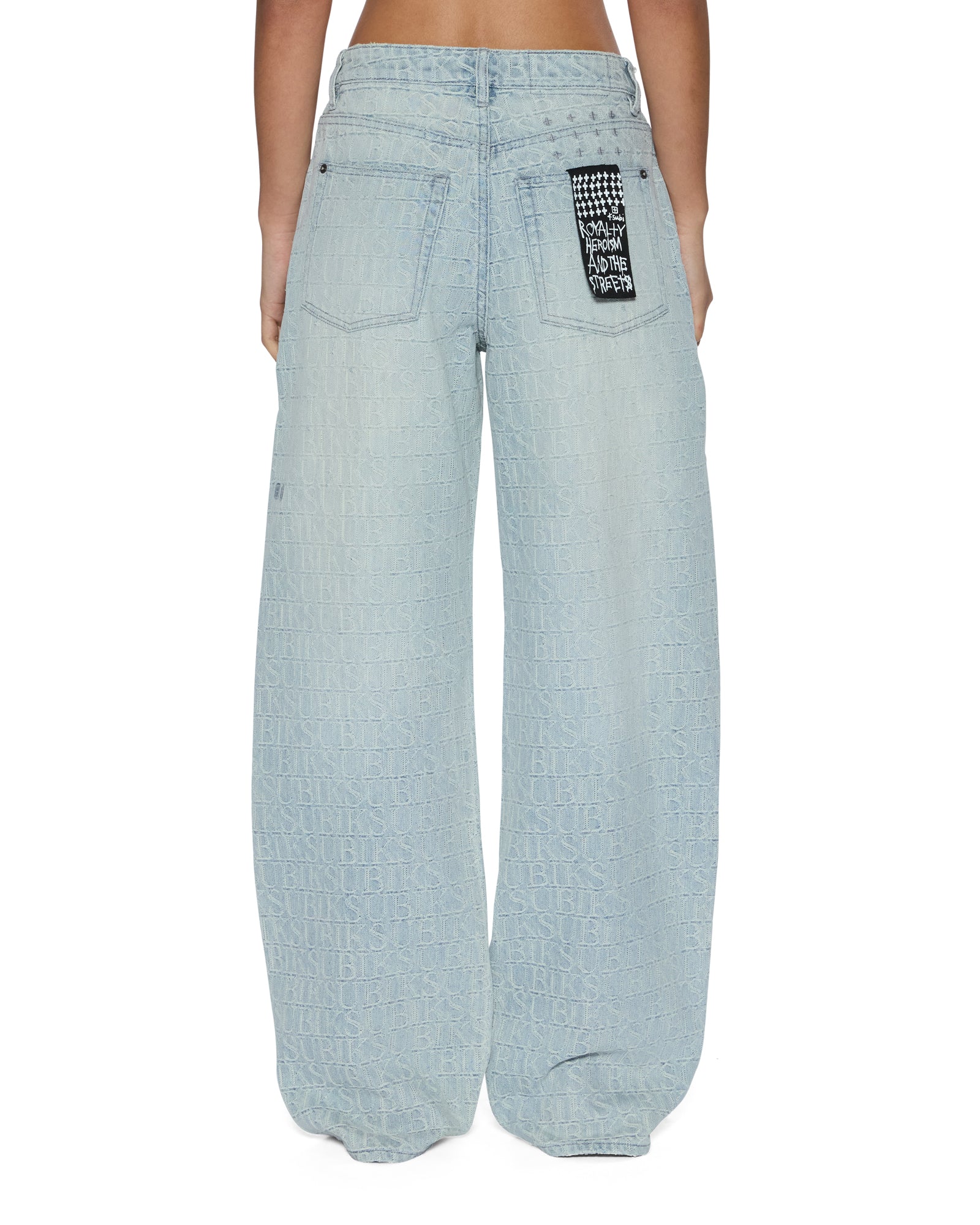The Low Rider Tile is a low-rise relaxed straight leg jean with classic five-pocket styling. Made from premium rigid denim with a custom Ksubi jacquard and a light stone wash, it features anti-silver hardware, T-box and 3x4 embroidery, and a removable pocket tag attached to the wearer's right back pocket. Style back with the Hudson Bustier Tile.