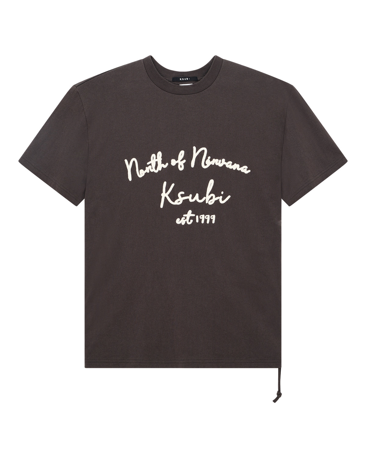 The Salud Biggie SS Tee Faded Black is an oversized fit short sleeve t-shirt with a raw-cut back hem, reverse overlocked side seams, and signature rats tail. Made from premium cotton jersey garment dyed in faded black, it features seasonal chainstitching art on the front, finished with signature T-box and 4x4 branding.