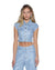 The Trucker Vest High Rollers is a sleeveless, cropped, fitted trucker vest made from premium European rigid denim in a light blue wash with an enzyme-soft finish. Densely embellished with all-over diamante hotfix crystals for a statement look, it features classic trucker panel detailing, front flap pockets, anti-silver Ksubi-branded hardware, and is finished with signature T-box and 3x4 embroidery.