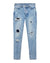The Van Winkle Painter Repair is a mid-rise five pocket full length skinny jean. Made from a premium comfort stretch indigo denim with a medium stone wash, it features angled belt loops, front fly seam detail, and rip and repair deconstruction with denim re-patching. Finished with T-box and 4x4 embroidery, ghost patching detail, and Ksubi branded hardware.